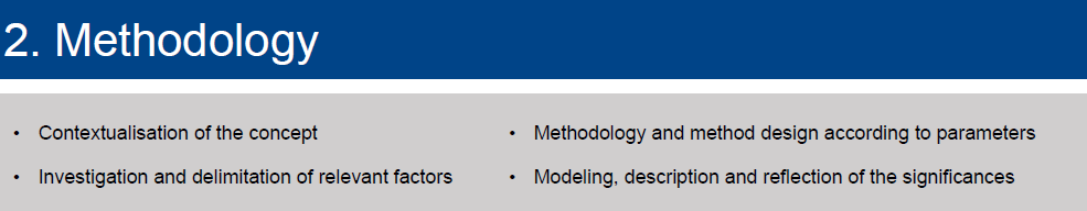 After the contextualisation and the delimitation of the relevant factors for the creation of the initial conditions, a methodological conception took place within the Real TIme Delphi for the selection and evaluation by the experts by means of an ordinal scale and the comment function of each thesis or scenario.